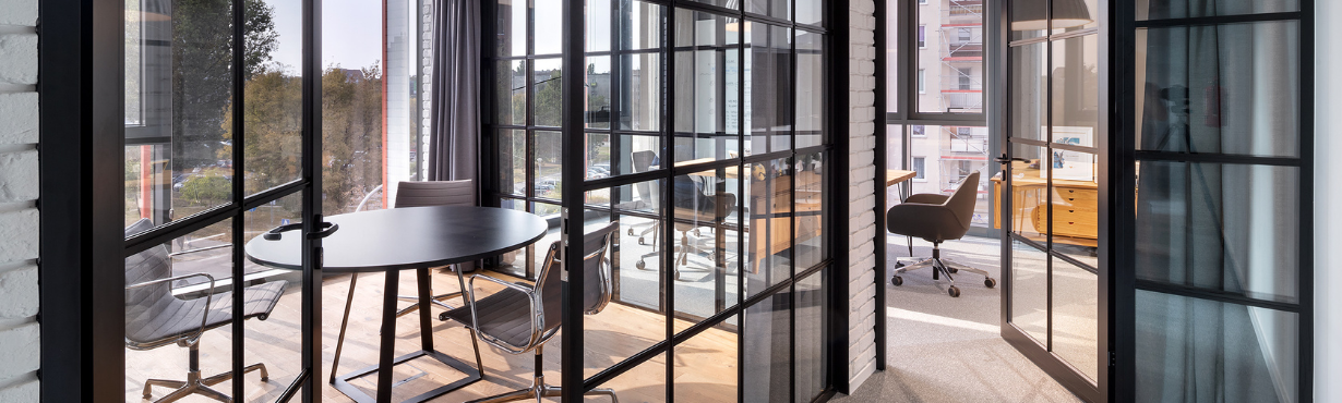 The ESPES 30 Factory loft wall is a single-glass construction with a light form and excellent acoustic performance – sound insulation up to Rw = 40 dB. The system is distinguished by decorative muntins applied to the glass, giving it an industrial character inspired by loft aesthetics. Thanks to this, the loft wall not only divides the space but also becomes a striking design element. ESPES 30 Factory with muntins is perfect for offices, hotels, showrooms, and other modern commercial interiors where both acoustics and style matter.