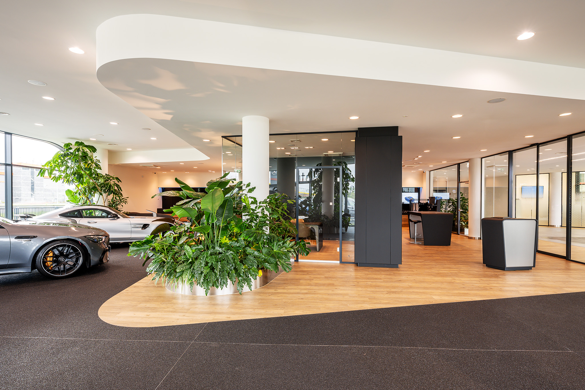 W salonach motoryzacyjnych liczy się ekspozycja aut, dlatego transparentność szkła ma szczególne znaczenie. ESPES 30 pozwala zachować widoczność pojazdów z praktycznie każdego zakątka salonu.